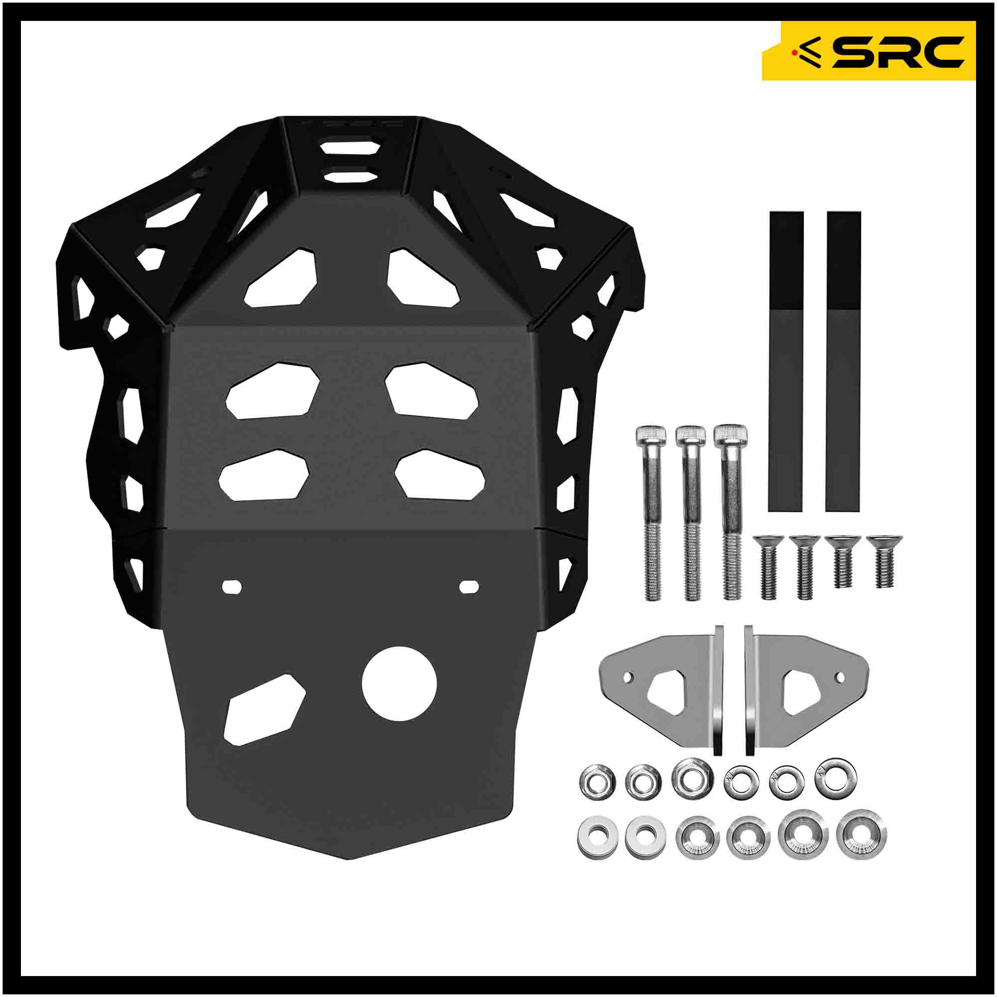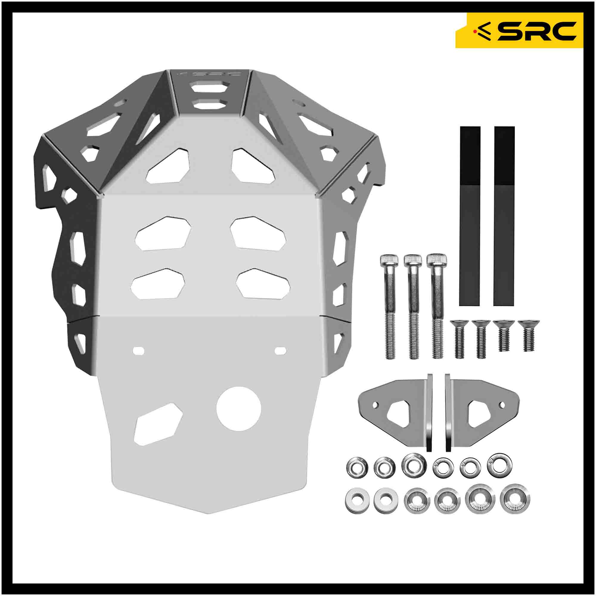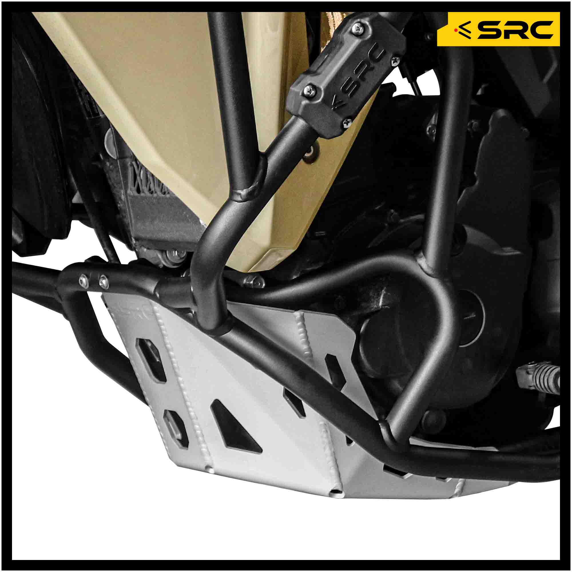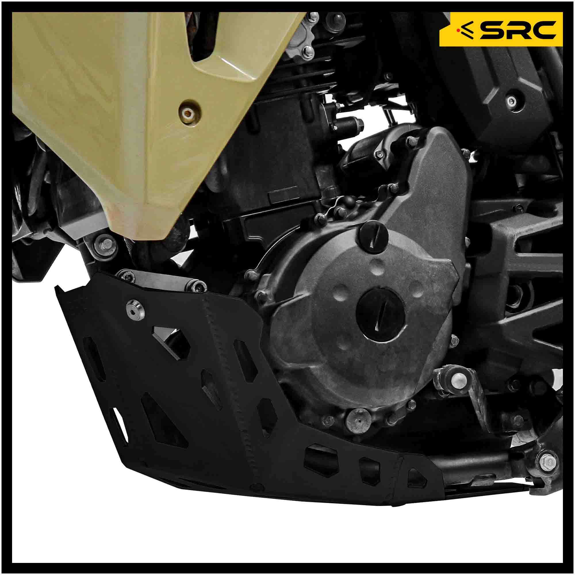 SRC skid plates are Compatible with OEM aftermarket motorcycles, no drilling, cutting or modification required.