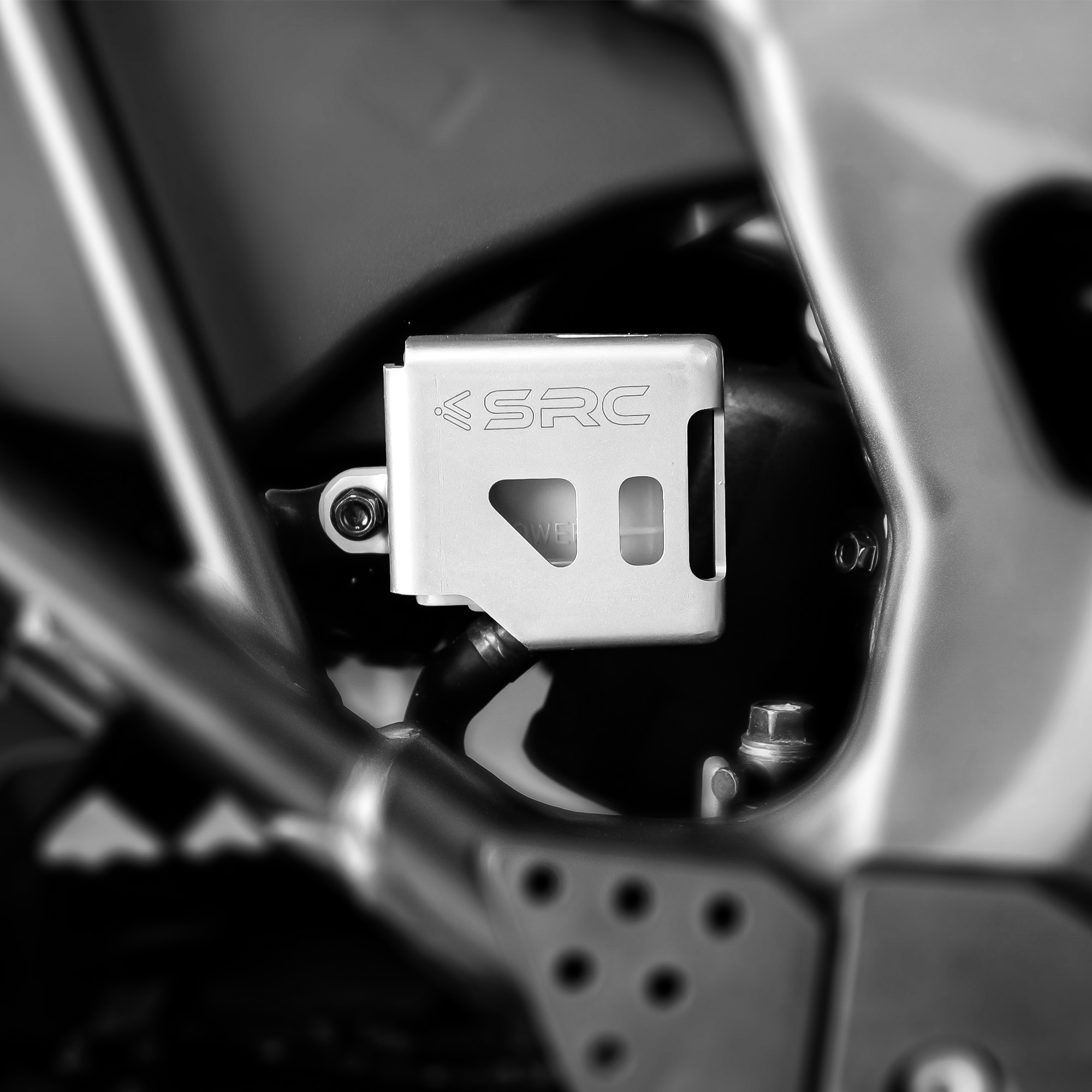 1. Protects the Rear Brake Reservoir made out of Non-ferrous/Injection Molded Plastic, from Stone/Pellet hit and in the event of a fall of the motorbike.